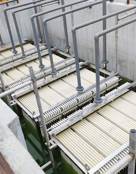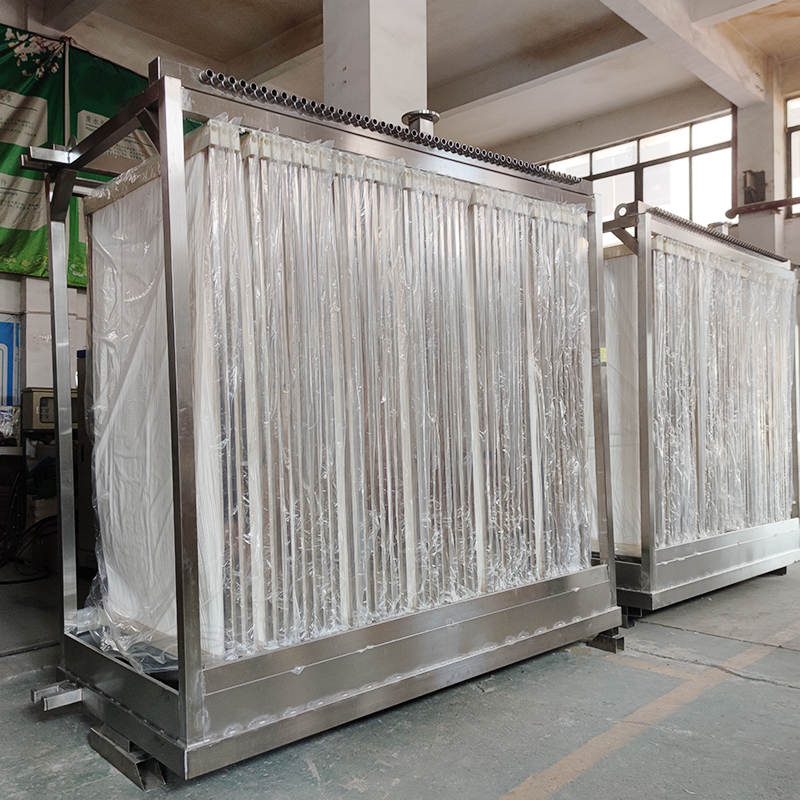 結(jié)構(gòu)形式: 標(biāo)準(zhǔn)化簾式結(jié)構(gòu)。將數(shù)萬根中空纖維膜絲通過獨(dú)特的端封技術(shù)和澆鑄工藝制成堅固的簾式膜元件,便于集成到標(biāo)準(zhǔn)膜架上,安裝維護(hù)簡便。